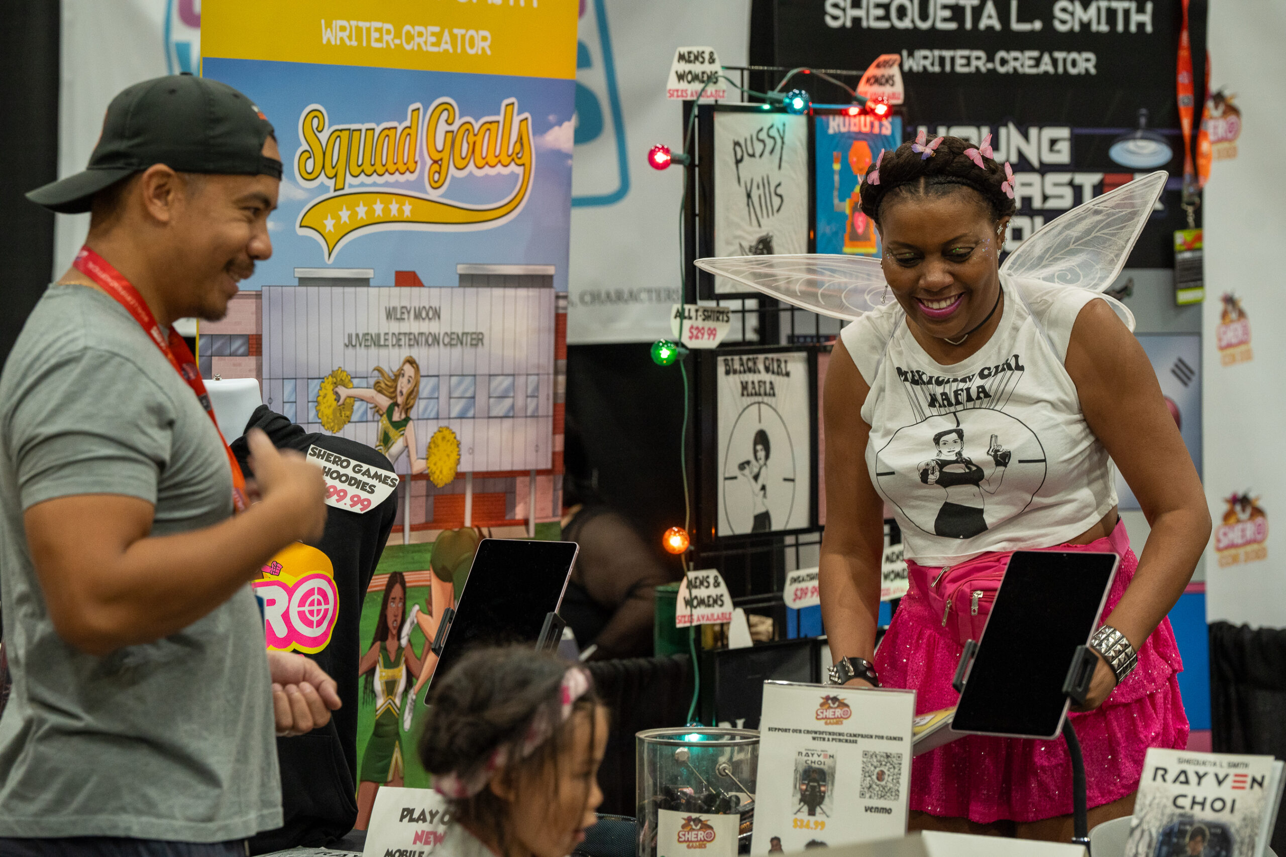 We brought nearly 20 amazing women vendors with us, and Shero Comics / Shero Games held down the anchor position with our Shero Step & Rewtweet Pink Carpet glowing right next to our booth. With over 100,000 attendees flooding the convention, it honestly felt like we met every single one — and they came ready to PLAY.